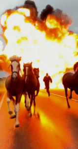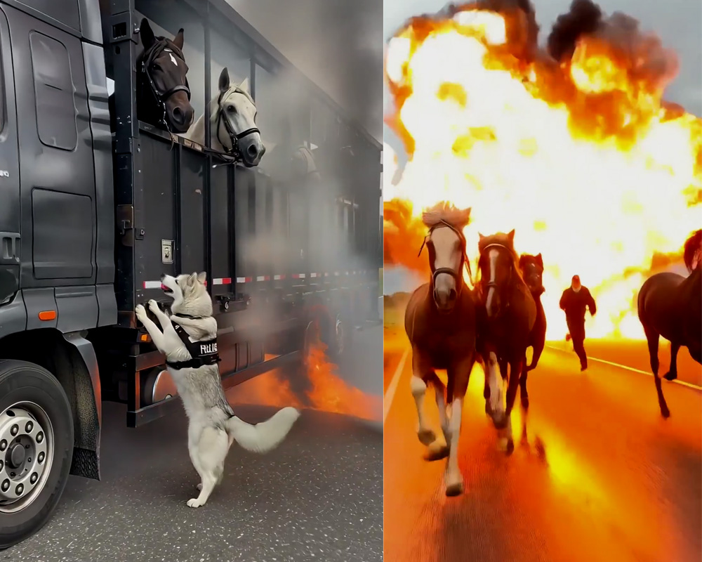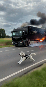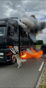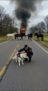 In a quiet rural town where animals and humans lived in close harmony, an extraordinary act of bravery unfolded—one that would forever be remembered as a story of loyalty, instinct, and courage. It began on a warm afternoon when a sudden accident sent shockwaves through the peaceful community. A truck towing a small horse trailer skidded off the road, tipping onto its side. Flames erupted quickly, spreading from the engine to the trailer, where a frightened horse was trapped and unable to escape.